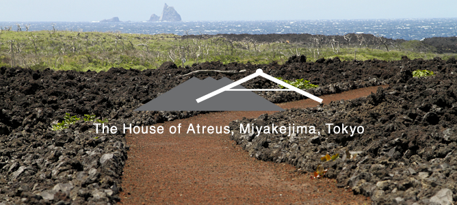 ギリシャ悲劇の家族の物語を借りながら、家やまち、住まいや暮らしについて考えるプロジェクト。今年度は、火山と共生する三宅島(東京都三宅村)にアトレウス家が移住するためのリサーチとシミュレーションを、現地と都心で行います。都心にいながら島を想像する《山手篇》、実際に島を訪れ未来を思う《三宅島篇》の二部構成です。